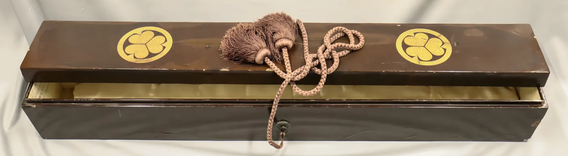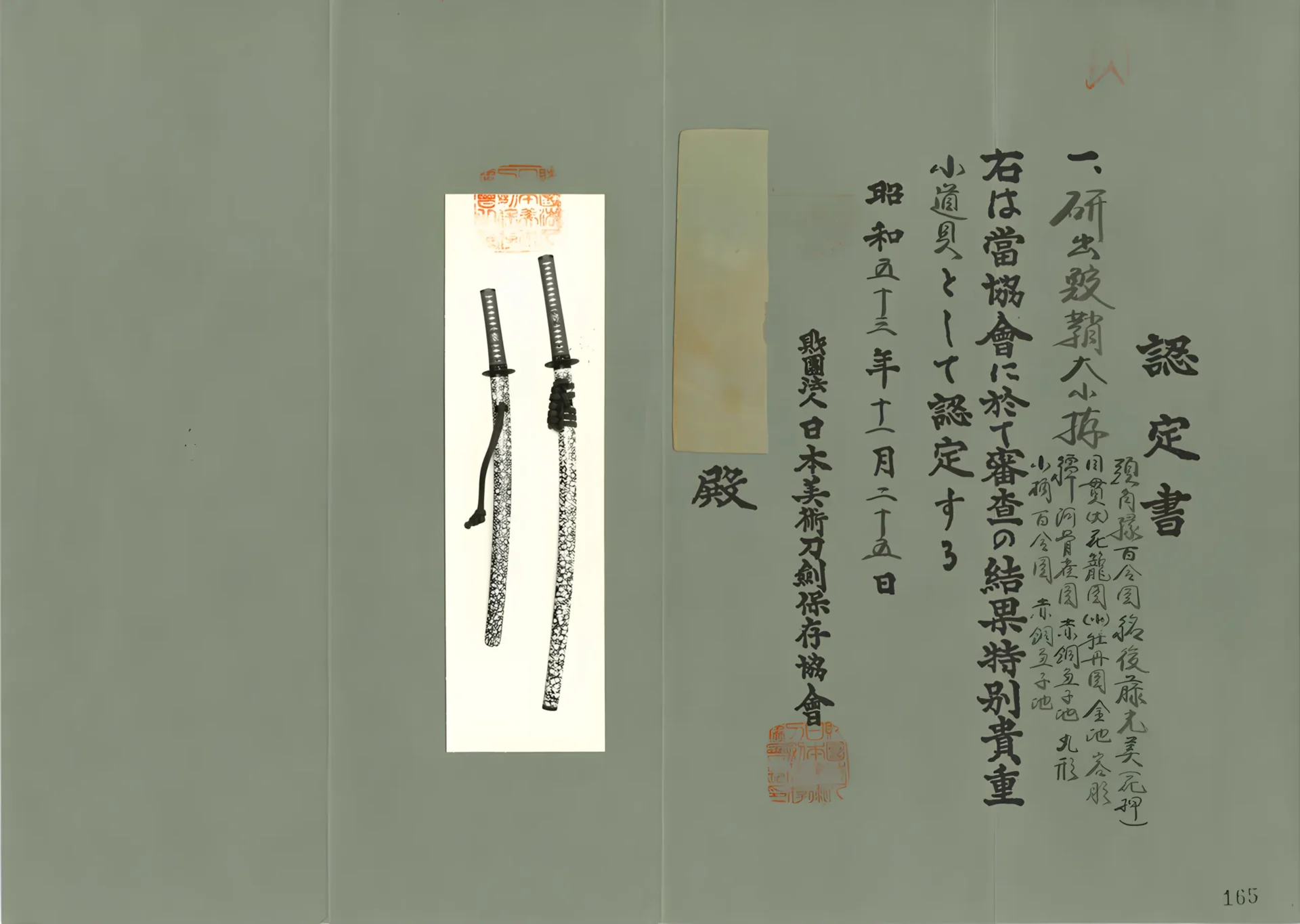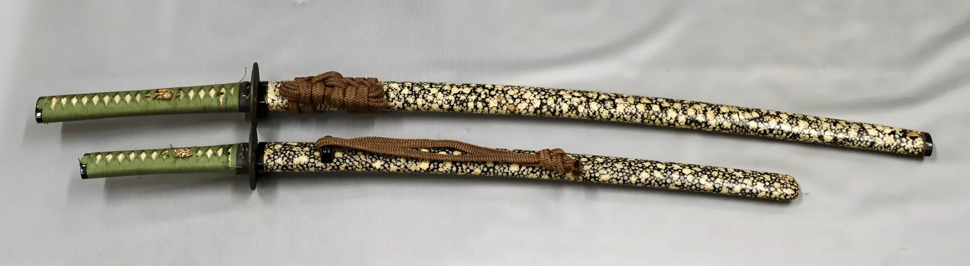 E4248 寿幸 E4248 寿幸 (E4248) 販売価格(税込) ¥4,500,000 在庫状態 : 在庫有り 数量振 E4248 寿幸 さび、刃こぼれなし。小杢目詰む。湾れ刃に小さい互の目。小切先。生茎。栗尻。銀製祐乗ハバキ。鞘に1か所約3mmの剥がれあり。「肥前守藤原鎮政」銘入り小柄。表「濱部見龍子壽幸(としゆき)」。裏「天保十二年八月日」。B4249と大小揃えでの販売になります。大小刀のバラ売りはしません。 本商品は、B4249との大小揃えでの販売となります。 刀番 E4248 銘 寿幸 長さcm 42.4 反り 1.1 目釘 1 時代 江戸時代末期 刃文 乱 元幅 2.7 元重 0.7 先幅 1.8 先重 0.5 重g 367 登録番号 東京211633 登録年 昭和53年 「B4249 寿幸」については以下の画像をクリックして内容をご確認ください。 Category 刀の種類 (250) 在庫刀一覧 (193) A 白鞘刀 (27) B 拵付刀 (58) C 軍刀 (2) D 白鞘脇差 (65) E 拵付脇差 (20) F 短刀・剣・槍・銃・その他 (21) 売切れ (57) 価格帯 (193) 10万円未満 (1) 10万円以上 (47) 20万円以上 (36) 30万円以上 (45) 50万円以上 (55) 100万円以上 (9) 時代の分類 (193) 鎌倉 (1) 南北朝 (1) 室町初期 (5) 室町中期 (22) 室町末期 (44) 江戸初期 (53) 江戸中期 (28) 江戸末期 (18) 明治 (2) 昭和 (18) 現代刀 (1) 鑑定書 (31) 保存刀剣鑑定書 (24) 特別保存刀剣鑑定書 (4) その他鑑定書 (3) 認定書 (5) 貴重刀剣認定書 (3) 特別貴重刀剣認定書 (2)